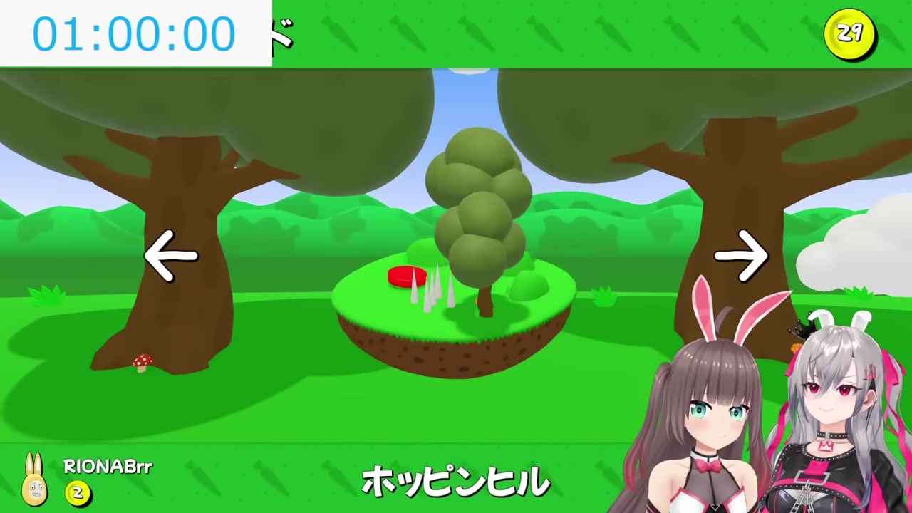 In a Super Bunny Man cooperative gameplay showdown, Natsuiro Matsuri teaches first-time player Momosuzu Nene the "rolling jump" technique to clear a difficult stage. Upon succeeding, Nene becomes overjoyed and thrilled, creating an adorable moment of their teamwork.