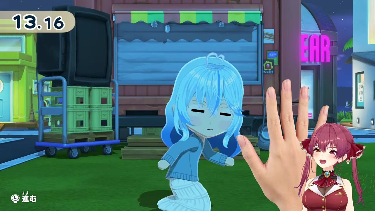 Marine plays "Daruma-san ga Koronda" in Tomodachi Life. She wins with a perfect anti-feint strategy and gets the coveted unicorn, but ends up receiving a "mountain of paperwork" at the last moment, leading to a hilarious finale with Lamy's "What do you mean~?"