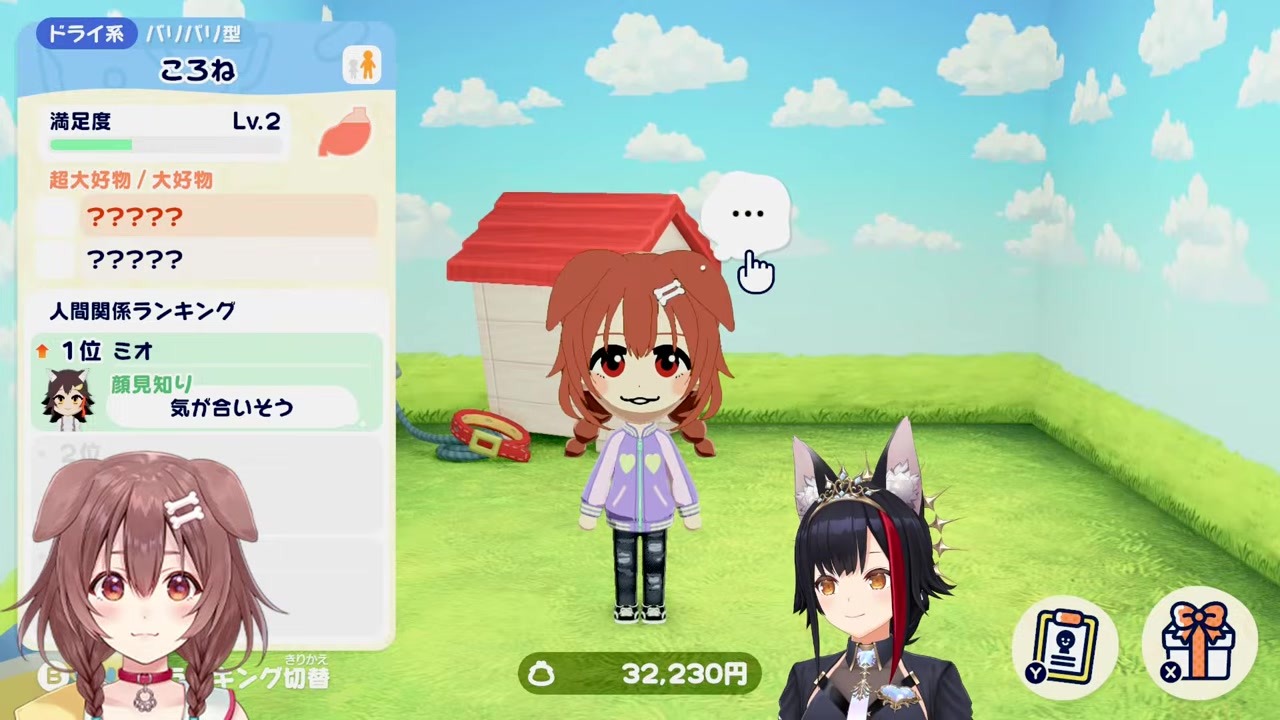 Mio Ookami creates Korone's Mii in Tomodachi Collection, which ends up looking like an anpan bread and is named 'Pan-Man.' She then makes her own Mii, which turns out looking like a random pebble on the ground, causing her to scream in despair.