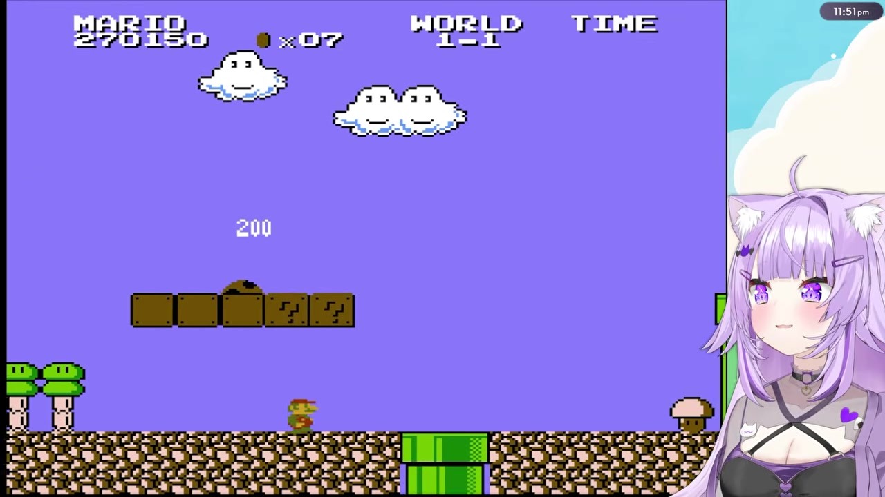 スーパーマリオブラザーズ2をノーワープでクリアした猫又おかゆ。予想外の隠しステージ「ワールド9」の出現に驚きを隠せず、「なんすか なんすか」と混乱しながらも興奮冷めやらぬ様子で挑戦する。