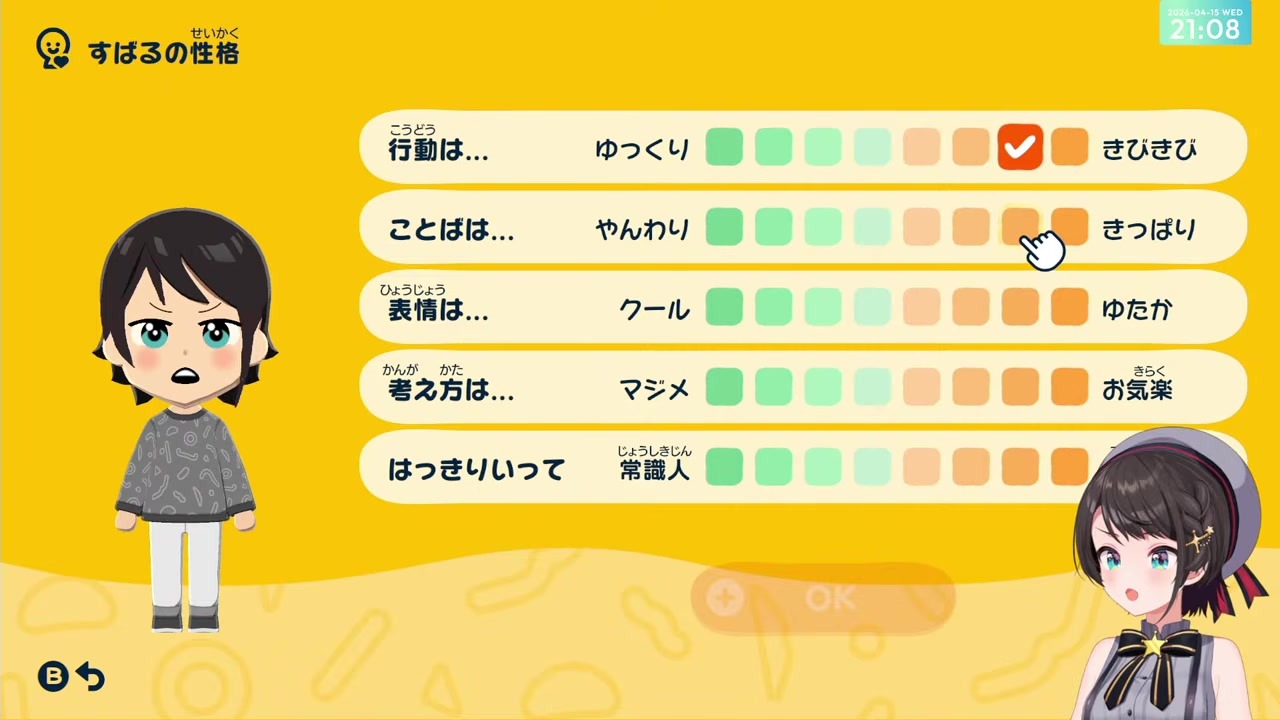 トモダチコレクションで自分の分身を作成する大空スバル。恋愛対象の性別選択で「スバトモとリスナーをくっつけたい」という下心から女性を選択し、「スバルはツノアヒルだから女しか無理」と独自の理論を展開。性格診断で「当たりすぎてる」と驚き、最後は「ありがとう」を「有バティ」と言い間違える自由すぎる島生活を始める。