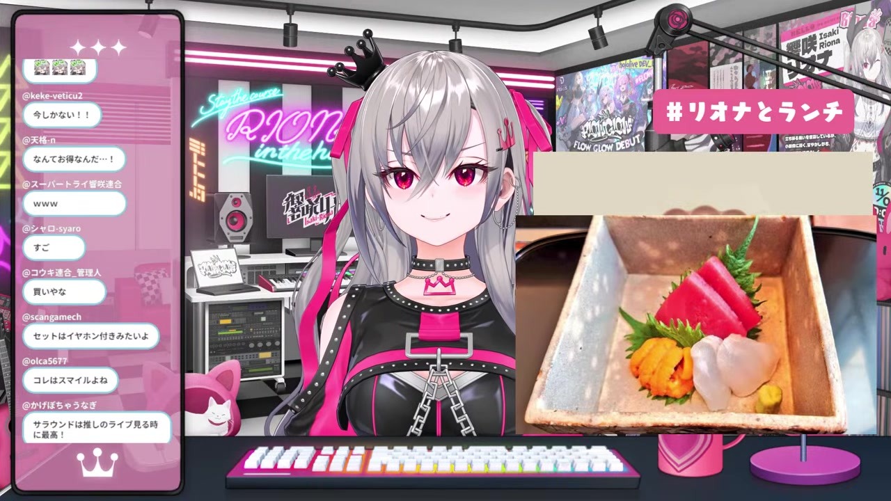 仕事の時間を完全に忘れて雑談に夢中になっていた響咲リオナ。配信中にふと時計を見ると13時を大幅に過ぎており、まさかの勤務遅刻ギリギリ状態に大パニック。残された短い時間で視聴者から送られてきたランチ写真を「毎日キラキラサンシャイン」と叫びながら早口・爆速で紹介し、なんとか配信を締める。